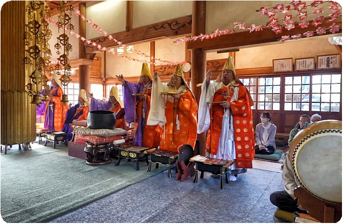 12月31日大晦日、人の心にある108つの煩悩に例え梵鐘を108回突きます。 年が明け1日元旦に仏様、御守護神、檀信徒各家御先祖に報恩供養、重ねて国家安泰を祈願いたします。 |